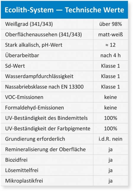 Überragende Standzeiten auch an frei exponierten Fassaden sprechen für sich. Der echt mineralische Aufbau erlaubt kostengünstige Anstrichrenovierung ohne Abbeizen und Entfernung gerissener organischer Anstrichschwarten.